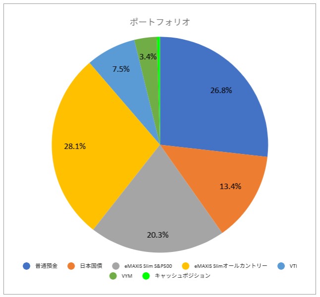 前月末の資産額をもとにポートフォリオとリタイアへの進捗を公開します。